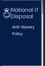 National IT Disposal, the UK’s premier provider of IT disposal and secure data destruction services in the UK, is committed to maintaining and enforcing a zero-tolerance approach towards any form of slavery and human trafficking within its business and supply chains.
